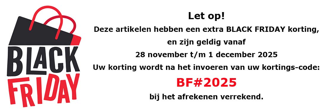 Let op!Dit artikel heeft extra BLACK FRIDAY korting, en is geldig vanaf 28 November t/m 1 December 2025Uw korting wordt na het invoeren van uw kortings-code: BF#2025 bij het afrekenen verrekend.Dit artikel kost na het de korting-code deze prijs: Prijs € 29,95 - de korting € 19,95..
